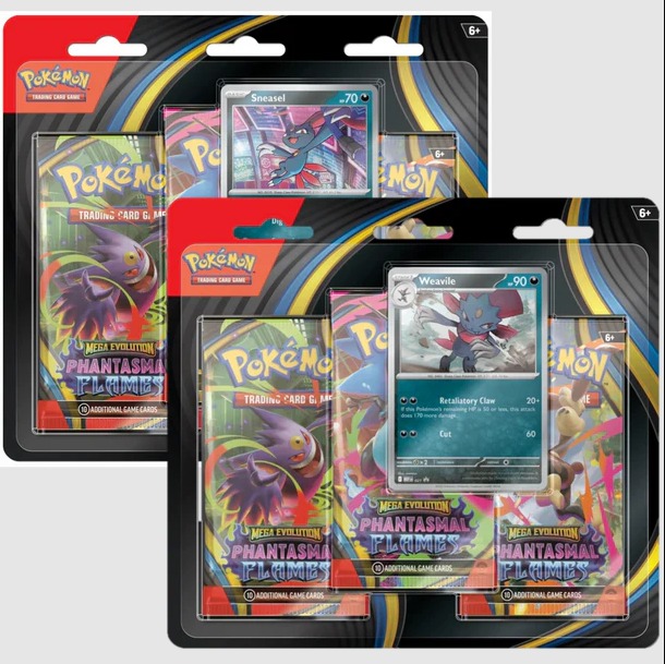 En Blister Mega Evolución M02 Llamas fantasmales o Fuegos Fantasmales con 3 sobres, modelo a elegir.