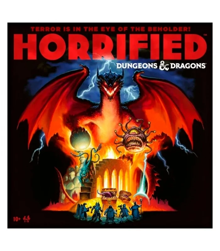 Horrified (Edición Limitada) Español Dungeons&Dragons – Ravensburger. Cooperativo para 1-5 jugadores (60 min). Una alianza mítica con 50 años de historia en el cine de monstruos. Atractivo multigeneracional e internacional, ideal para públicos diversos. Compatible con Horrified: Greek Monsters y Horrified: World of Monsters. Caja de 10.5″x10.5″. Edad recomendada: 10+.